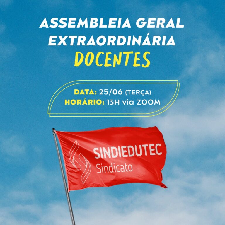No próximo dia 25 de junho, terça-feira, às 13h, o SINDIEDUTEC realiza uma assembleia geral extraordinária, na modalidade virtual, para os servidores docentes do IFPR.